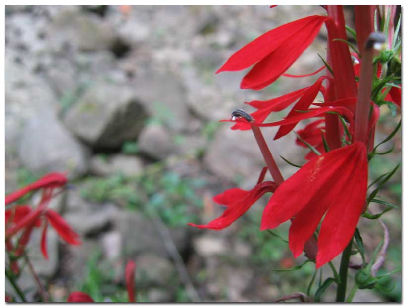 Sometimes it's the little things, like these wildflowers, that really make a walk interesting. All through the warm months, plants bloom at different times and altitudes. Every day sees something different. These just happen to be out today. The red ones are Cardinal Flowers. Luckily for us, they bloom late in the summer and add a splash of color to the scenery.